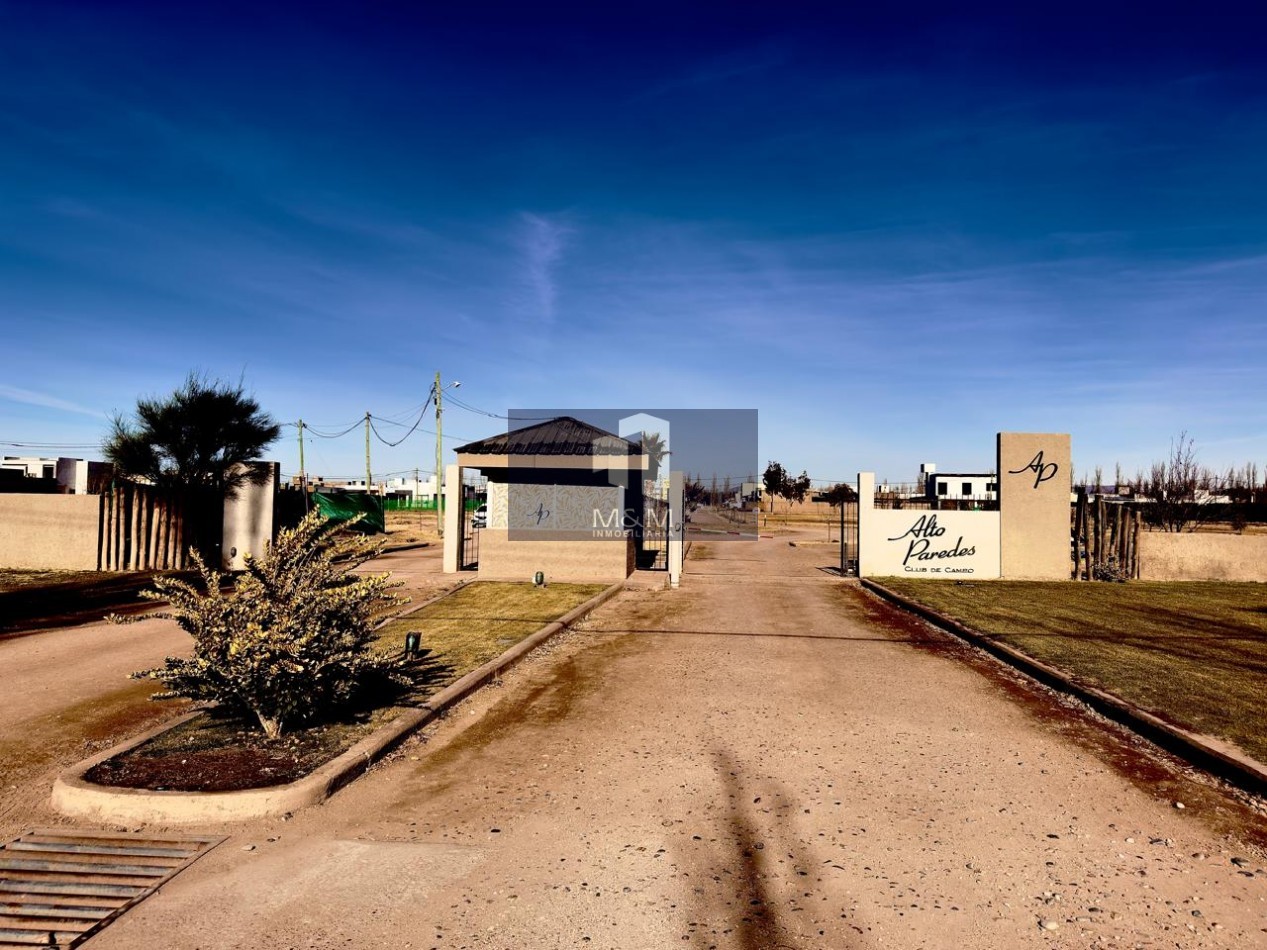 Oportunidad Lote ubicado en Club de Campo Alto Paredes, zona exclusiva Departamento de San Rafael, Distrito Las Paredes,. con salida a Avenida Sarmiento, entre El Toledano y Calle Bentos, este loteo se encuentra a solo 1 km de Avenida Hipólito Yrigoyen, el acceso principal a San Rafael. superficie 445,20 m2, cuenta con servicios de energía eléctrica, agua potable, gas natural (sin conexión), seguridad privada.-